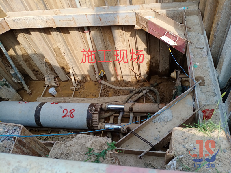頂管機在液壓千斤頂助力下頂進時停止挖土,傳力柱上和兩